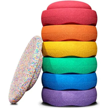 Stapelstein Rainbow set van 6 + Confetti balance board
