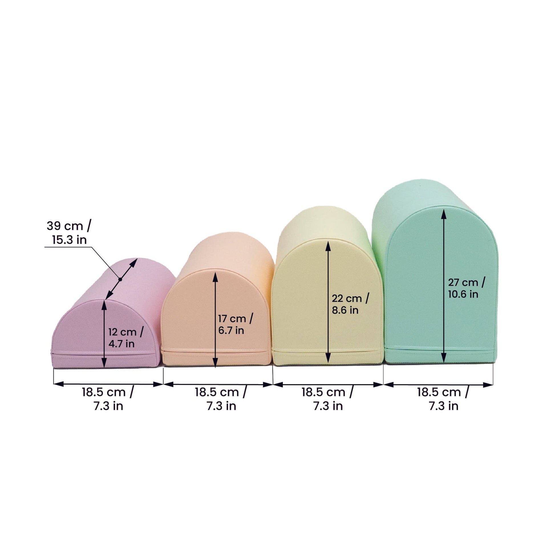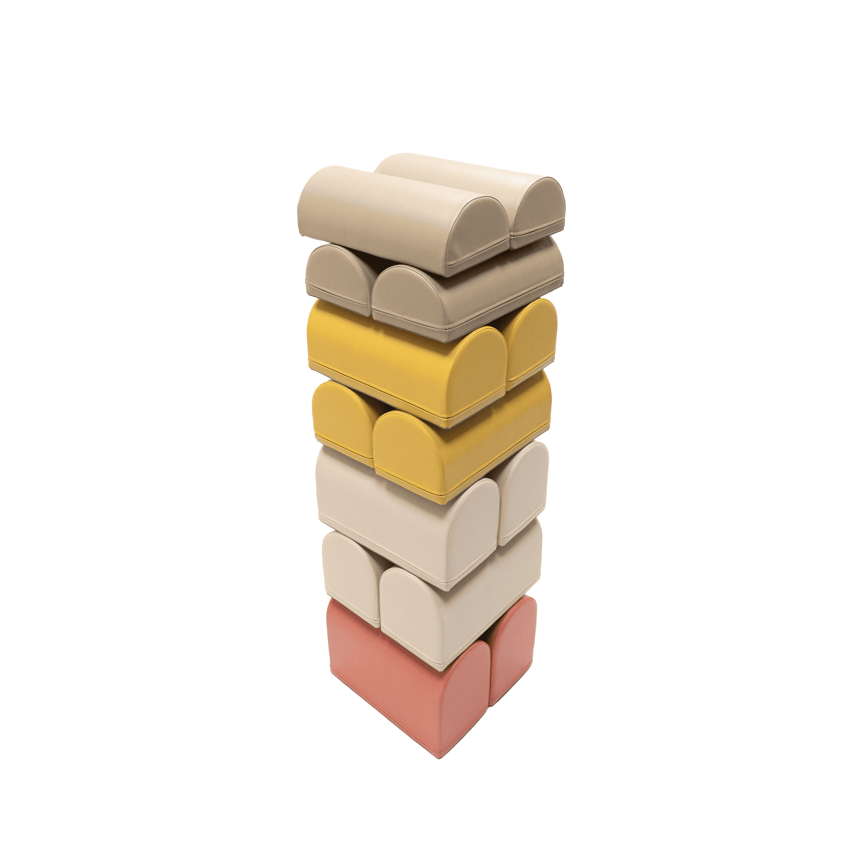 Creativiteit en verbeeldingskracht: Zachte blokken kunnen op verschillende manieren gestapeld, gecombineerd en gerangschikt worden. Zo kunnen kinderen hun eigen bouwwerken, hindernisbanen of fantasierijke speelsituaties creëren.