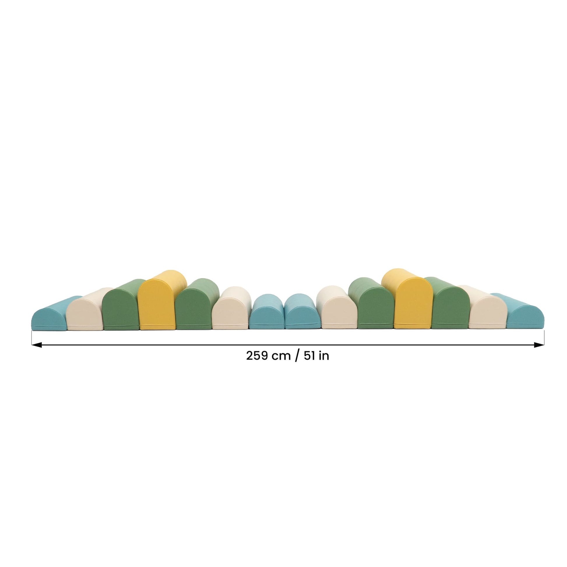 Lichtgewicht en stapelbaar: Elk element is gemaakt van licht maar stevig schuim, waardoor ze gemakkelijk te tillen en te stapelen zijn – voor kinderen én volwassenen!
