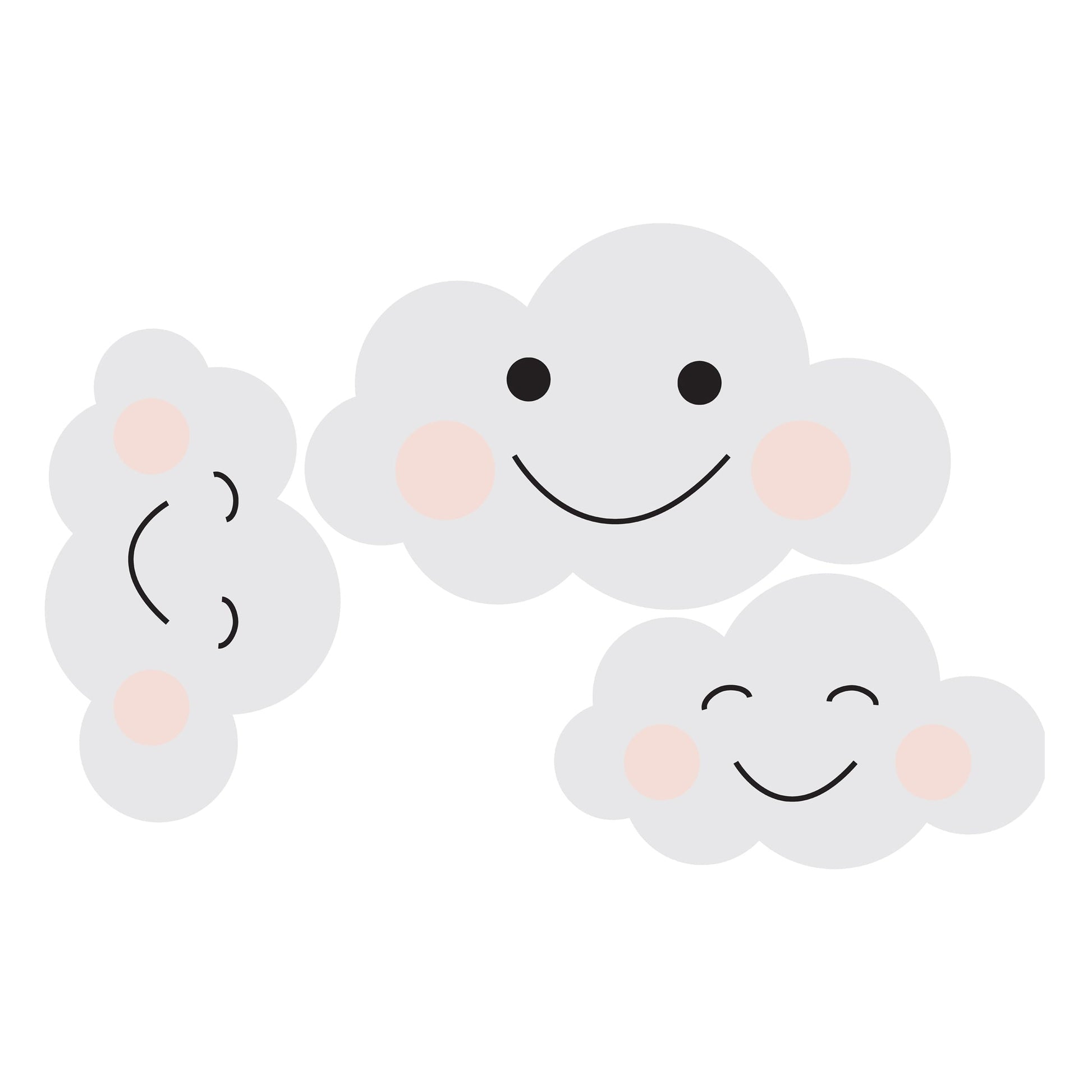 Our smiling clouds are pure optimism. Light gray with cute salmony-pink cheeks.